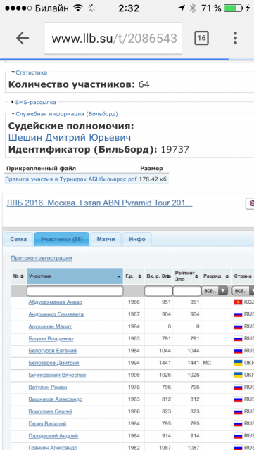 Дим, сейчас (2:30) в ББ 68 человек, а на сайте ЛЛБ 62 - четверо отменили регистрацию, один из них Козлов Д.А, других придется выискивать. Это жутко неудобно...