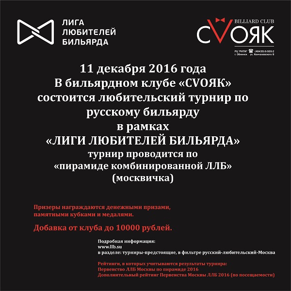 Приглашаем на турнир по Московской пирамиде — «Zebra CUP – 12»!