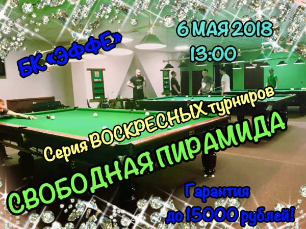 Взнос 7️⃣0️⃣0️⃣ рублей (600+100 руб откладывается участником и по 100 руб откладывает клуб БК ЭФФЕ на финальный турнир). Призовой фонд на данный момент составляет - 32400 рублей. ⚠️Скидка на столы для участников турнира 25%.Юноши и девушки до 16 лет взнос 500 и скидка на столы 50%. ⚠️Скидка на всё разливное пиво для участников турнира 50%. ⚠️Приз за максимальную серию (8 шаров) -1000 рублей сертификат от БК «ЭФФЕ». ‼️Гарантия 10.000 рублей от 8 человек: 5.000 - 1 место, 3000 – 2 место, 2000- 3 место. ‼️Гарантия 15.000 рублей от 16 человек: 7500 - 1 место, 4500 – 2 место, 3000 – 3 место. ‼️<8 человек - 100% от взносов + сертификат от БК ЭФФЕ: 1 место -1500 руб; 2 место -1000 руб ; 3 место -500 руб. Весь регламент воскресных турниров : https://vk.com/wall-6115596_864
