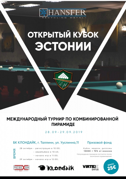 Открытый Кубок Эстонии , проводится с целью дальнейшего развития и популяризации Русского бильярда.