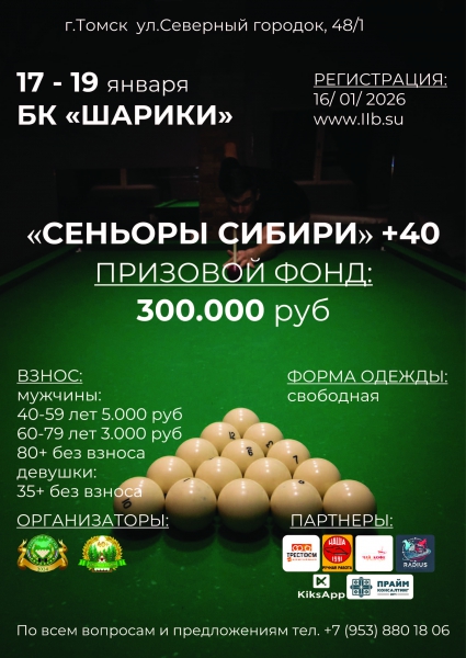 1-ГО ЭТАПА СЕРИИ ОТКРЫТЫХ ТУРНИРОВ ПО РУССКОМУ БИЛЬЯРДУ «СЕНЬОРЫ СИБИРИ 2026»