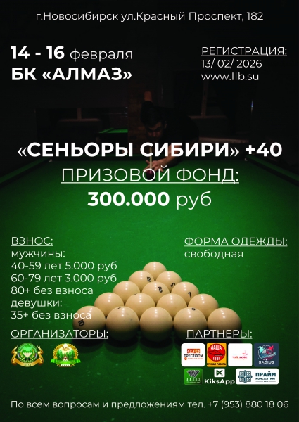 2-ГО ЭТАПА СЕРИИ ОТКРЫТЫХ ТУРНИРОВ ПО РУССКОМУ БИЛЬЯРДУ «СЕНЬОРЫ СИБИРИ 2026»